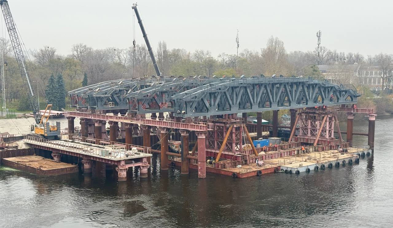 Під мостом Метро розпочали встановлення підтримуючих арочних конструкцій у їх проєктне положення – це ключовий етап протиаварійних робіт. Про це повідомляють у КК "Київавтодор".