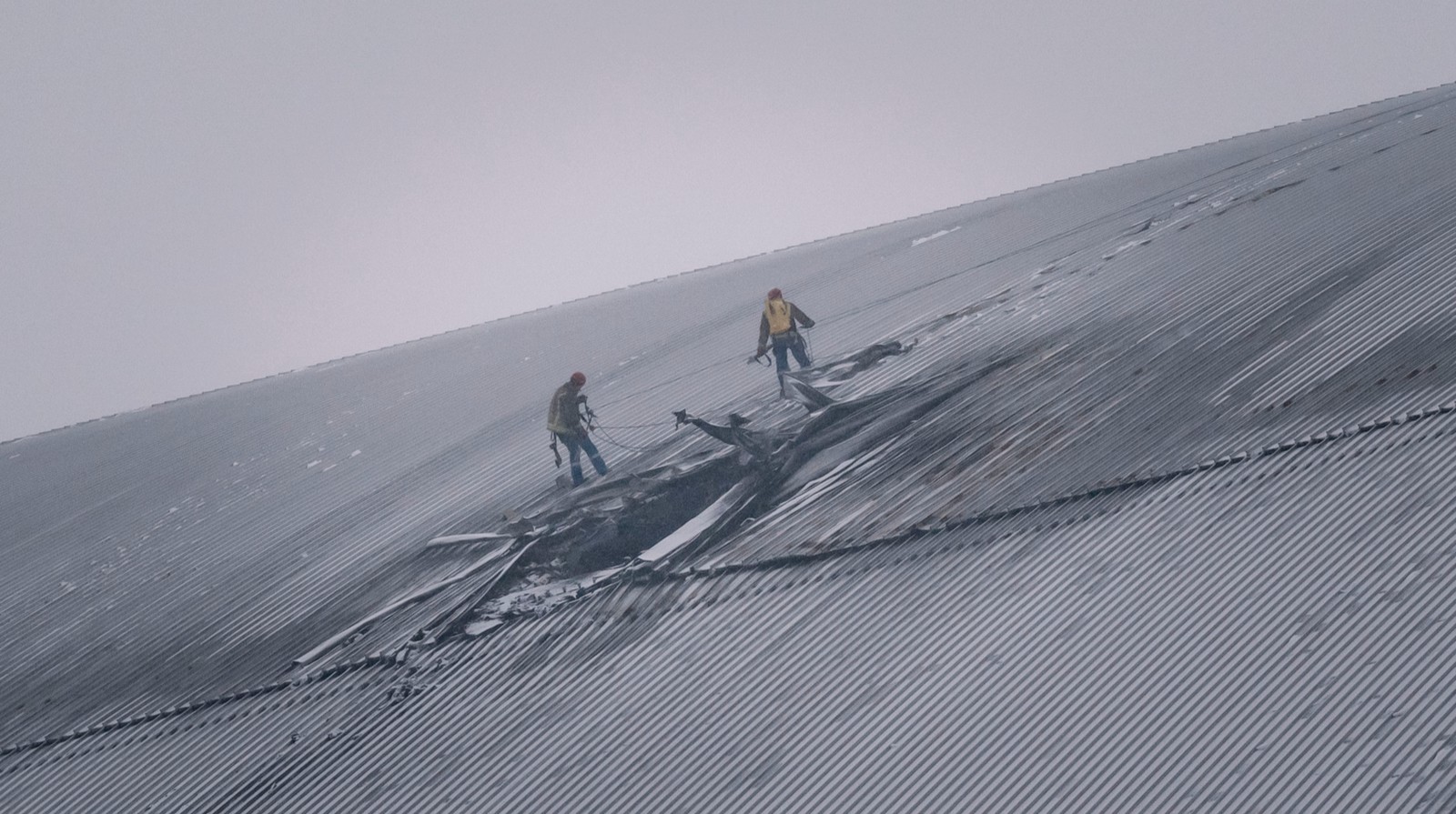 Наслідки удару російського безпілотника по радіаційному захисному куполу реактора №4 на Чорнобильській АЕС 14 лютого 2025 року
