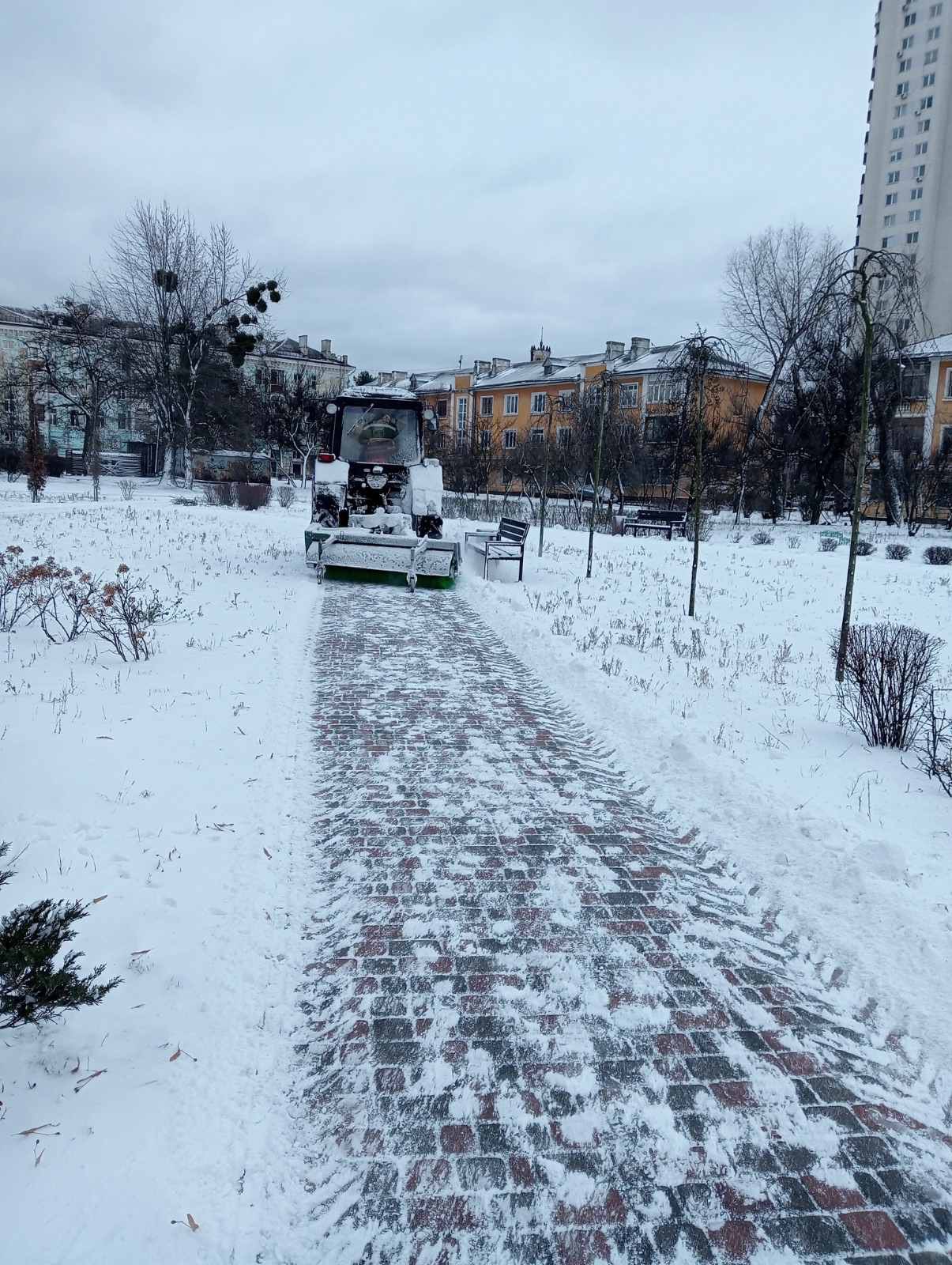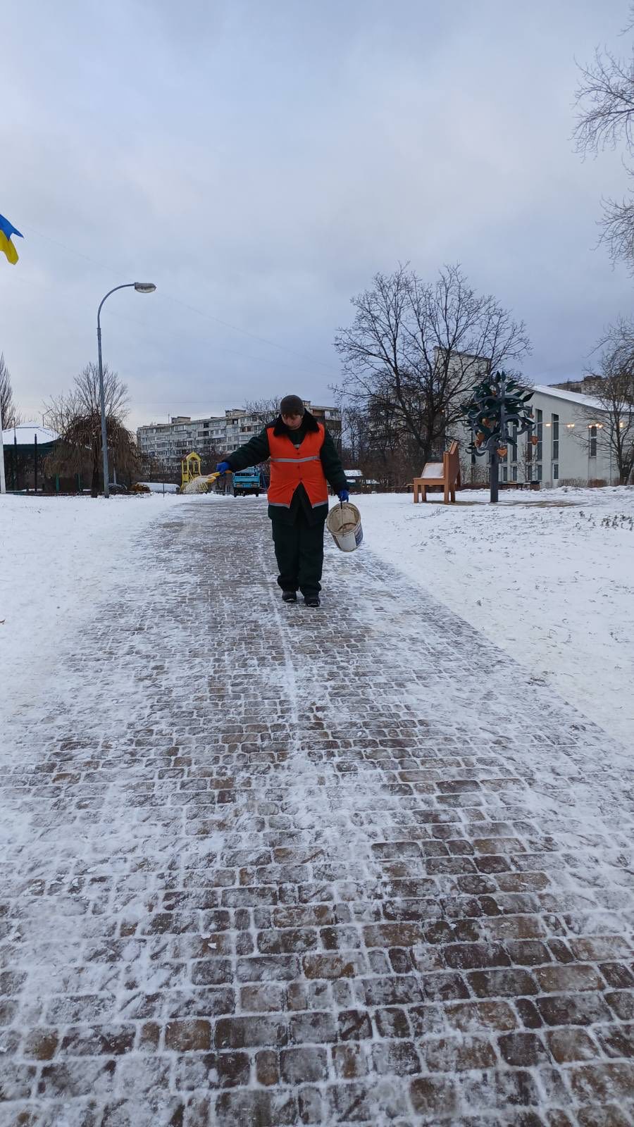 Роботи тривають у посиленому режимі: особливу увагу приділяємо доріжкам, сходам і підходам до зупинок громадського транспорту. Працюємо, щоб пересування містом залишалося безпечним і комфортним за будь-якої погоди.
