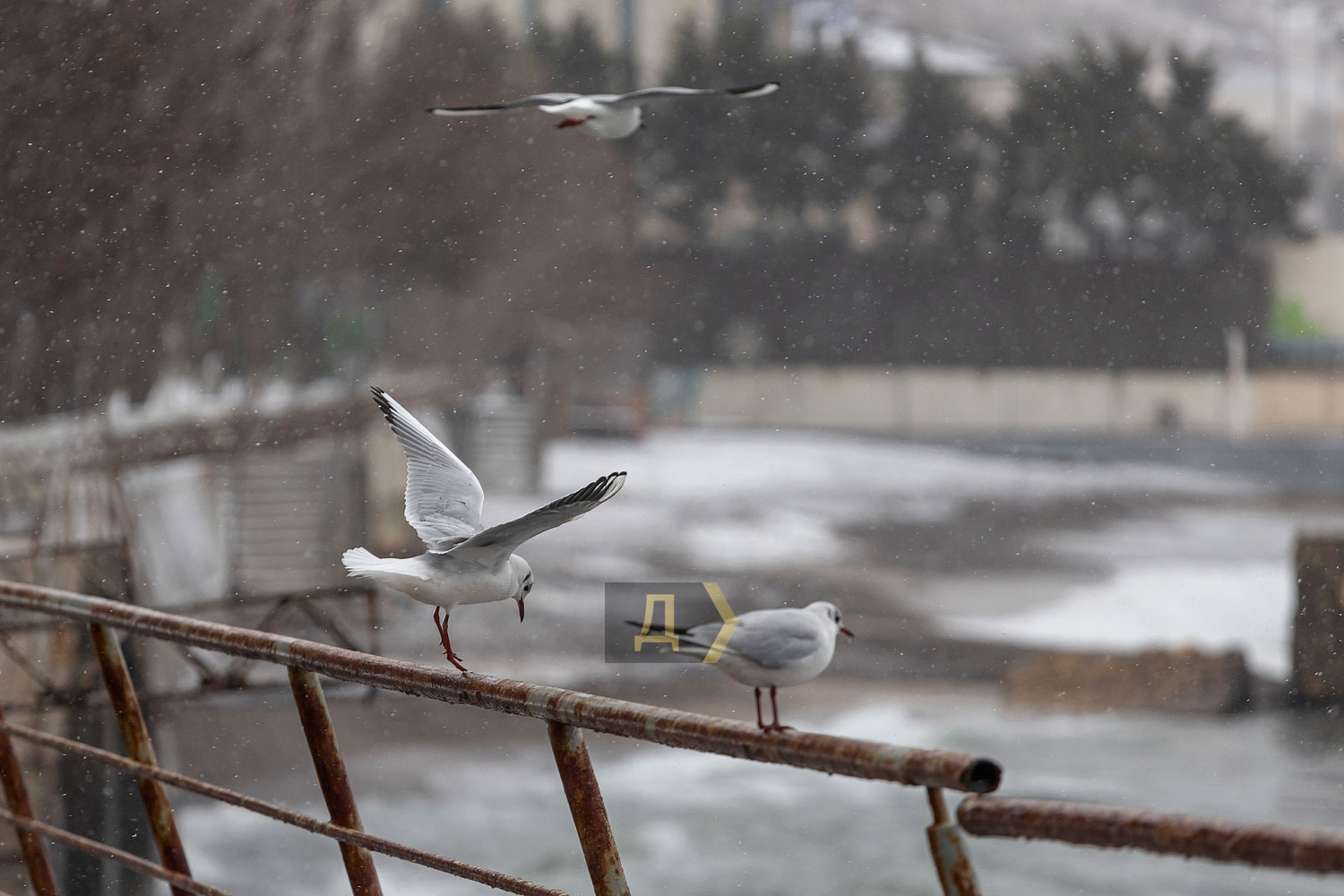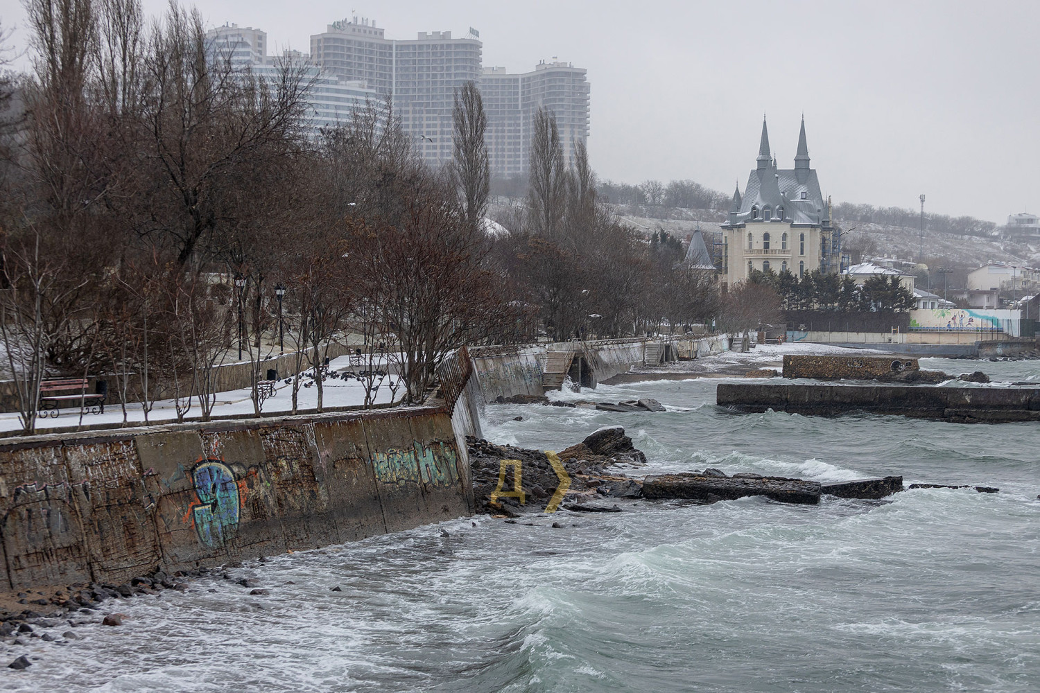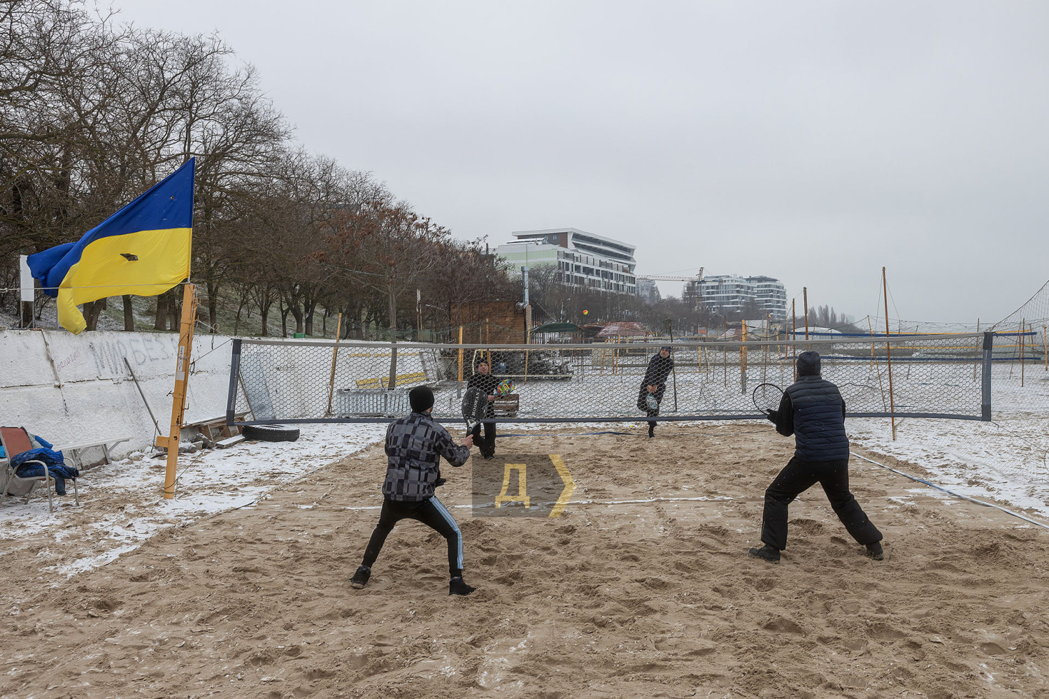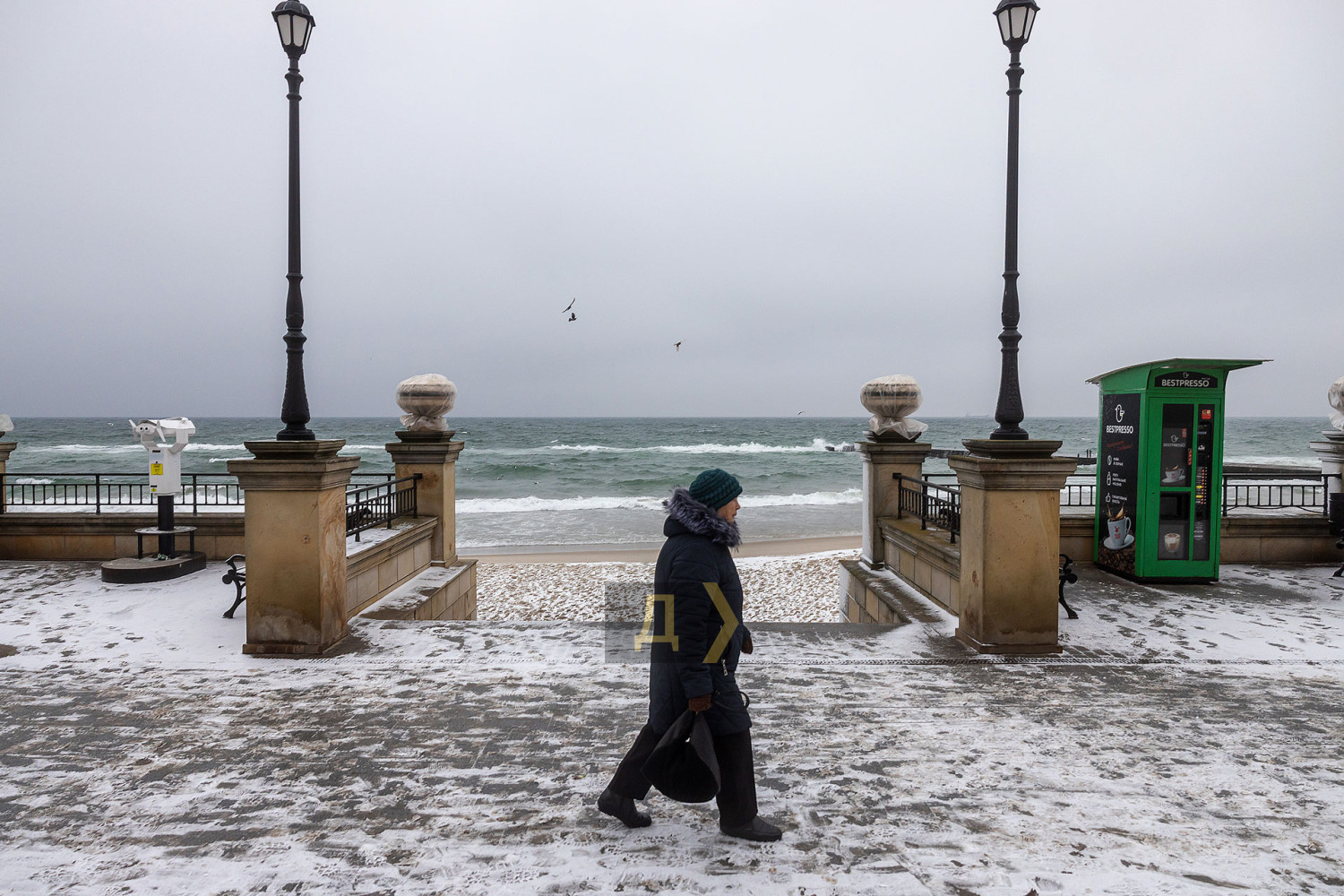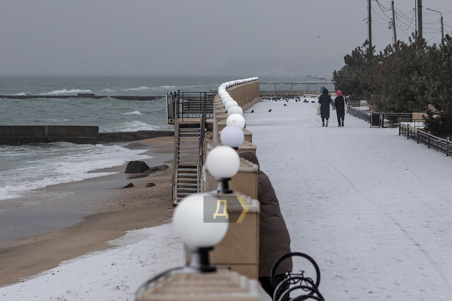 Снігова казка запанувала на одеському узбережжі. Нельотна погода відлякує відпочивальників, і пляжі безлюдні. На трасі здоров'я можна зустріти тільки самотніх собачників і любителів підгодовувати крикливих чайок. Потрапили в об'єктив нашого кореспондента і кілька екстремалів — гравців у популярний зараз падель (щось середнє між тенісом і бадмінтоном).