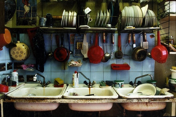 Квартири заселялися шляхом "ущільнення" – до власника помешкання підселяли інші родини. Кухня, ванна, туалет, коридор становили простір "загального користування" (світлина й текст з видання: Дімhom: століття змін. Львів, 2012. С. 29).